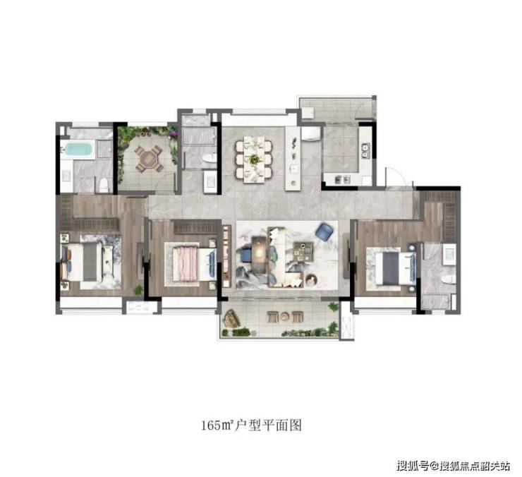 建面约165平方米户型:豪华大气,私密性强,适合大家庭居住。
