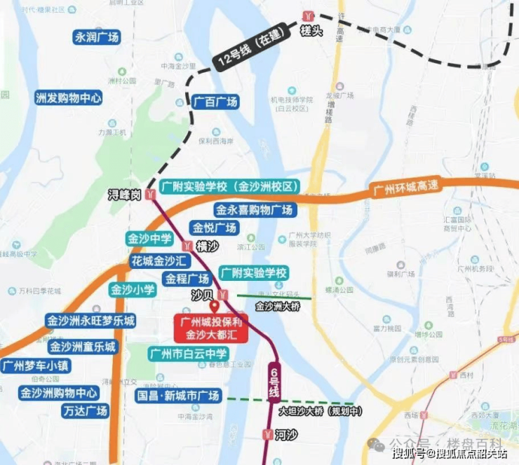 保利金沙大都汇所处的地理位置,是广州城市规划中极为罕见的“双核驱动”示范区域。项目位于广州市白云区环洲二路86号,具体坐落于地铁6号线沙贝站上盖,地处广佛两地的桥头堡位置。这一区域不仅是连接广州中心城区与佛山南海区的咽喉要道,更是广佛都市圈的核心展示区。