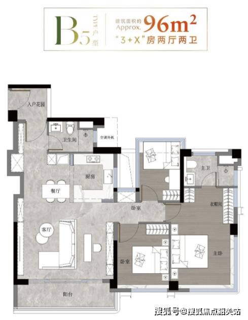 96㎡三房:餐客一体+6米阳台,LDK一体化提升互动性