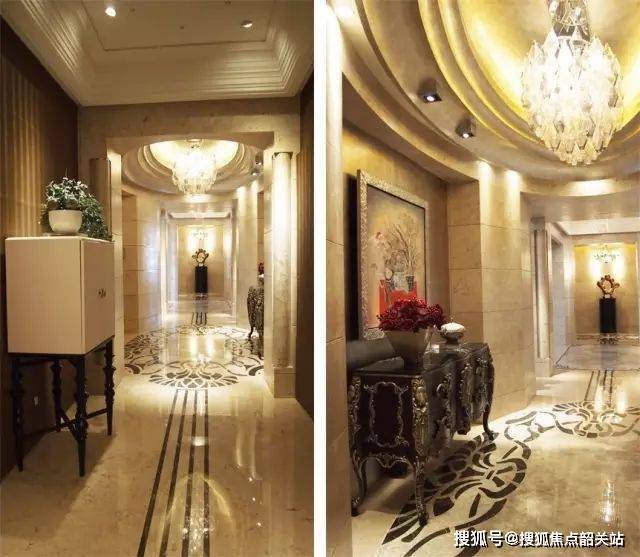 长廊的地面采用“一贯东西”的设计手法,以局部拼花来进行空间区隔,体现了设计的丰富性和趣味感,使得整体协调美和空间层次美完美结合。