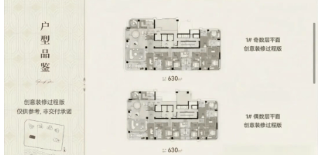 从布局来看,项目全盘 6 栋住宅呈北高南低的半月型排布,前排 2 栋分别为 35 层和 37 层,后排 4 栋为 49-50 层,通过合理的楼栋规划与后排楼栋扭转设计,实现 100% 户型望江。其中 1# 楼王为 35 层,一层一户,面积 635㎡,是项目的顶级户型;9# 楼 37 层,2 梯 2 户,面积 408-435㎡,为大平层产品;6# 和 8# 楼 48 层,3 梯 2 户,面积 277-348㎡;3# 楼 50 层,4 梯 3 户,面积 205-228㎡;5# 楼 50 层,3 梯 2 户,面积 241㎡。所有户型均采用湾流曲线幕墙体系,搭配 9.9 米尊玺塔冠,不仅外观高端大气,还能最大化保障观景视野,南向望江户型可直接欣赏珠江夜景,居住体验极佳。