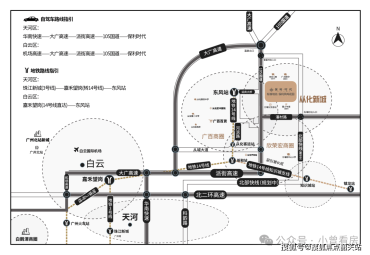 北部快线二期石海村出入口距离项目仅 1 公里,自驾可快速接入华南快速、大广高速、派街高速等主干道,全程高速直达广州市中心,车程控制在 1 小时左右,跨区出行高效便捷。