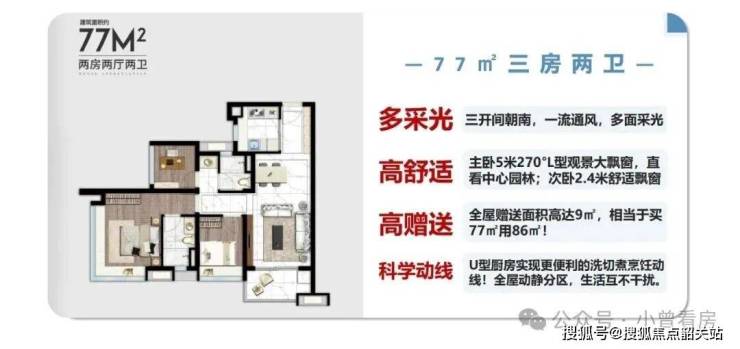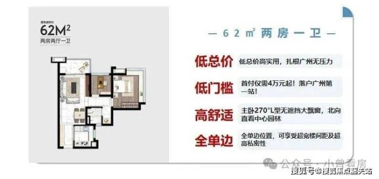 紧凑实用户型,空间布局合理,无浪费面积。客厅连接观景阳台,采光通风俱佳;双卧室带飘窗,延伸空间视野;厨房 L 型设计,操作动线流畅,适合单身贵族、年轻夫妻或刚需上车家庭。