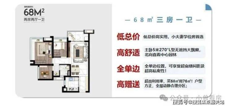 所有户型均采用方正格局、动静分区、明厨明卫设计,最大化提升空间利用率与居住舒适度,精装修交付标准,省心省力入住。
