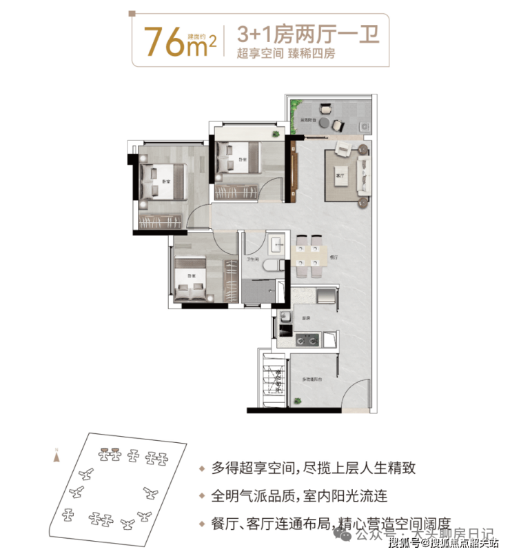 【76㎡3+1房2厅1卫】总价390-410万
