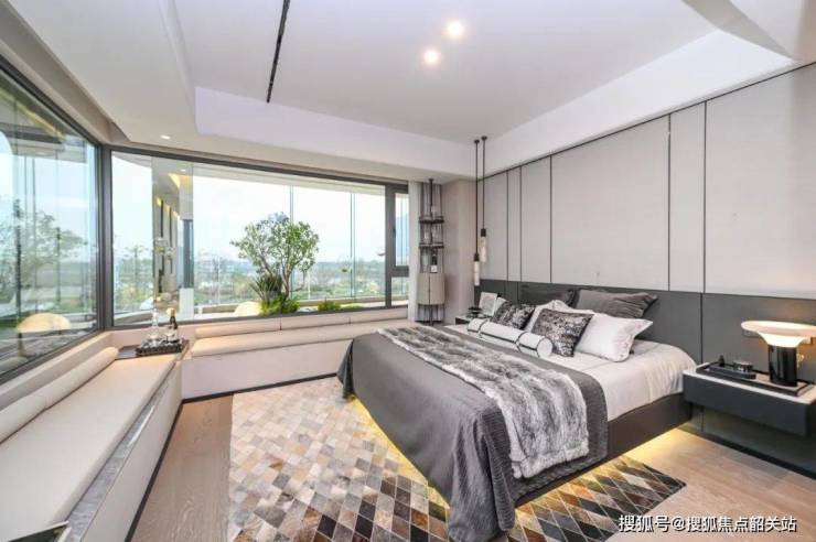 主卧同样是270°全景采光,超大L型飘窗,更高窗地比,空间更通透,视野更广阔,内外仿若无界限。