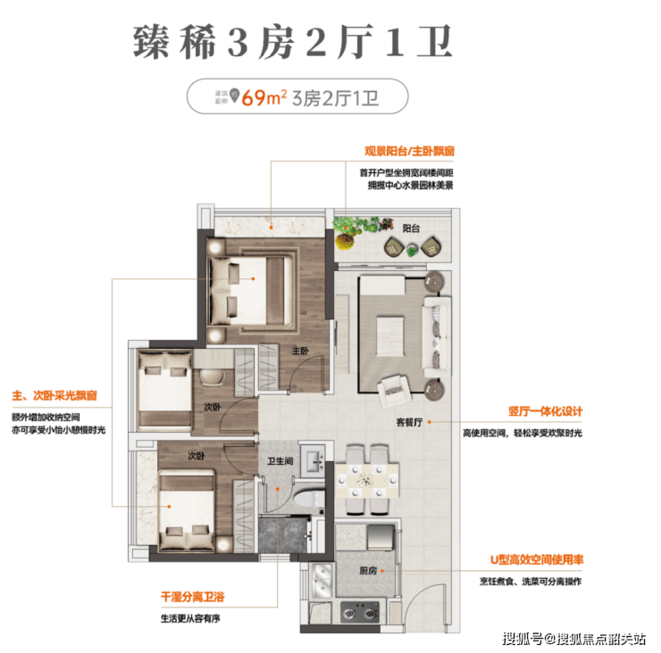 建面约69㎡丨低总价三房一卫