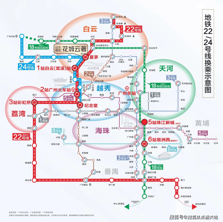 22号线素有“湾区交通动脉”之称的22号线。广州地铁22号线,时速高达160km,连接空港、白云棠溪、广州火车站、南站等6大交通枢纽,光是换乘点就高达16处之多。