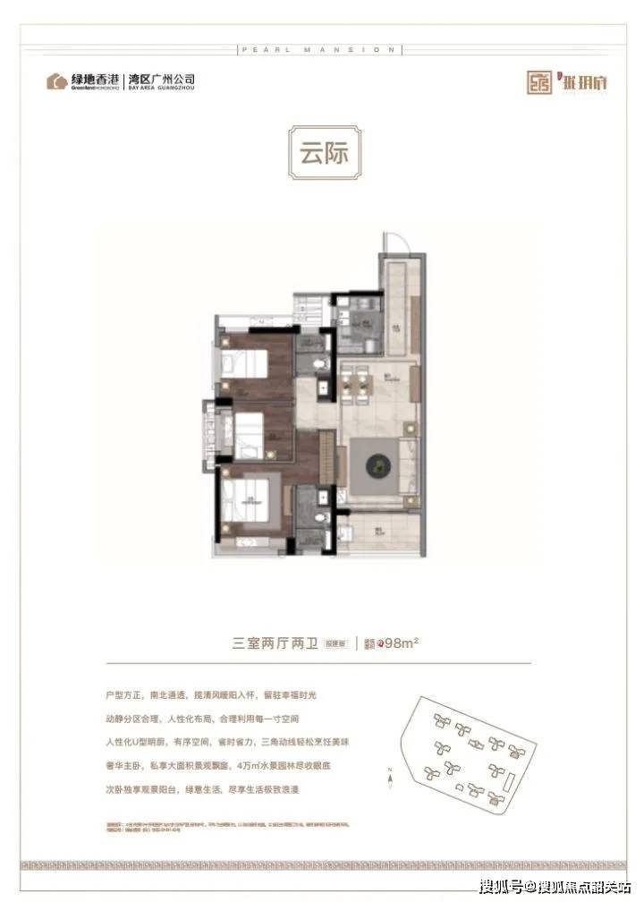 品字形结构,户户南向无遮挡,南北通透,小区每一户景观都能达到最大化,可以同时享受园景、水景等多重景观。