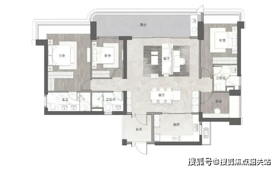 185㎡大平层:双主卧套房配置,私密性强,适合多孩家庭或追求品质生活的高净值人群。