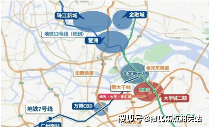 越秀・大学・星汇城坐落于国际创新城的核心区域,位处琶洲以南,紧邻地铁 4 号线新造站,交通便捷。项目所处之地被纳入大学城二期规划版图,享有 “南中国硅谷” 美誉,是广深科技走廊与科创中轴的交汇点,汇聚丰富教育资源与科研力量。大学城二期作为一期的自然延伸,共享卓越教育与科研资源,华南理工大学国际校区、暨南大学番禺校区、广州医科大学二期等高校纷纷落户,营造出浓厚的学术氛围,为项目赋予独特魅力与价值。