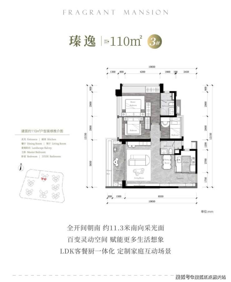 110㎡户型:做到了极致的三房两卫,是改善入门的首选,性价比极高。