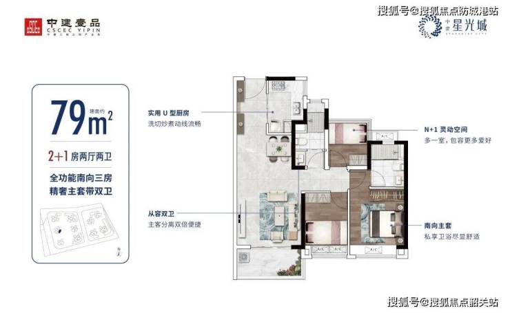 79㎡三房:总价198万,主卧套房设计,带独立卫浴,得房率95%!
