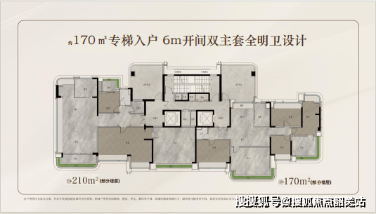 210㎡环幕江景户型:双套房布局,270°江景视野,阳台面积达25㎡,配备独立电梯厅。