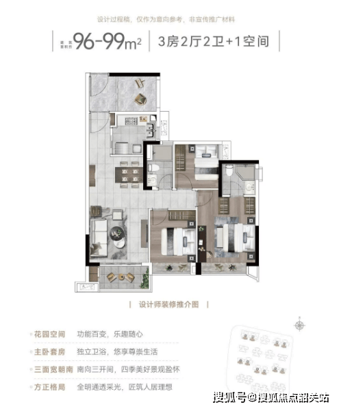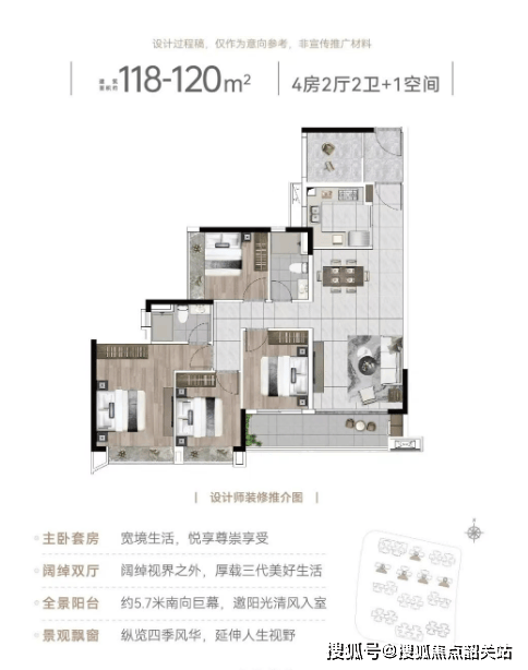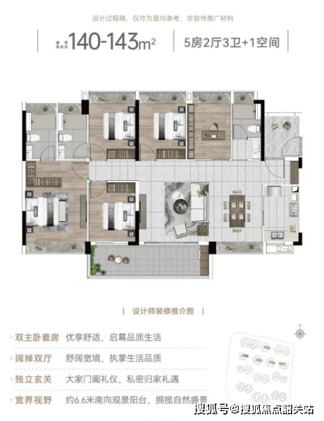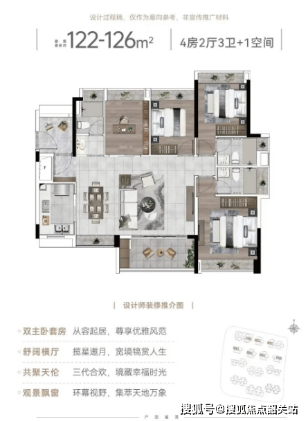 项目主打96至142平方米的户型,其中以四房两厅为主打产品,满足不同家庭的需求。特别是126平方米的双主套四房户型,更是受到市场的广泛关注。