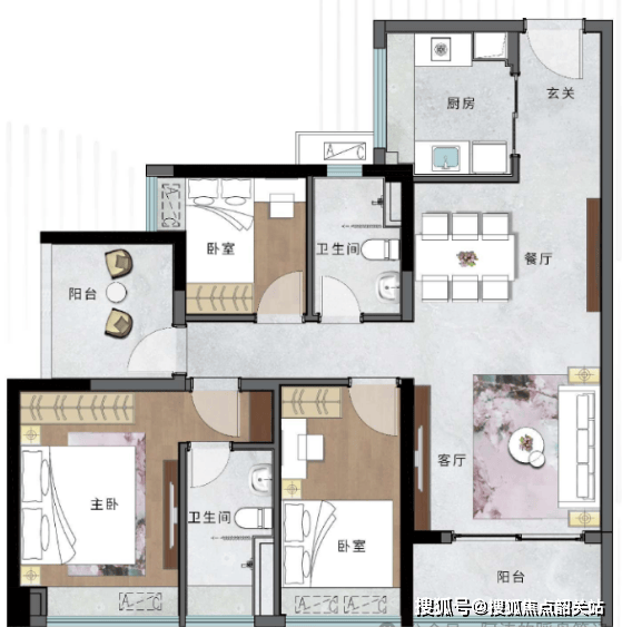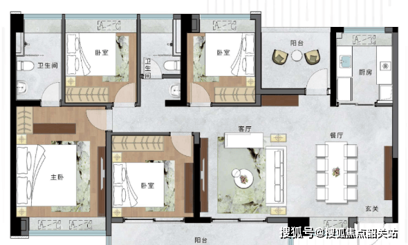 【98㎡】3+1室2厅2卫(南朝向):这款户型主打“多变空间”,3+1户型设计,具备超高的空间扩容性和多变性,可根据家庭需求灵活改造空间,满足不同阶段的居住需求。卧室全飘窗设计,增加空间采光与使用面积,悦享舒适人居;户型方正适用,动静分区互不干扰,家人活动与休息互不影响;主卧套房设计,干湿分离,洁净分区,提升居住的私密性与舒适度,适合改善型刚需家庭。