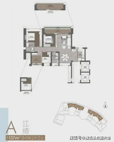 137平3+1房:紧凑实用,功能齐全,适合年轻家庭。