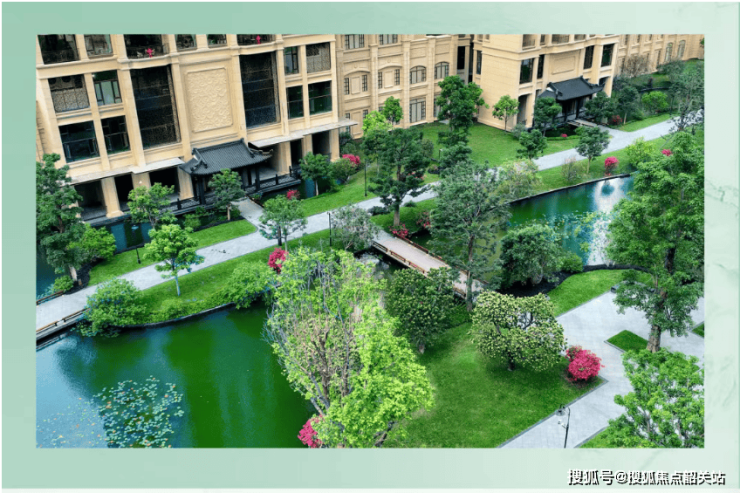 创新采用 **“一岛一栋、临户水溪”** 设计,每栋楼如同独立岛屿,宅前宅后均有灵动水溪环绕,形成 “玉带缠腰” 的风水格局,既隔绝噪音、保障隐私,又营造出江南水乡的诗意氛围。约 1 万㎡中央荷塘是社区核心景观,夏季荷叶田田、荷花盛开,冬季残荷点缀,四季皆景;水中绿岛点缀,搭配香樟、凤凰木、桂花等全冠移植乔木,与灌木、花卉形成多层次立体景观,漫步其中,步移景异、心旷神怡。