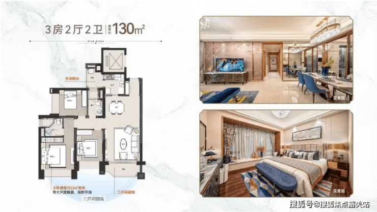建面约 130㎡ 3 房 2 厅 2 卫(爆款刚需改善)