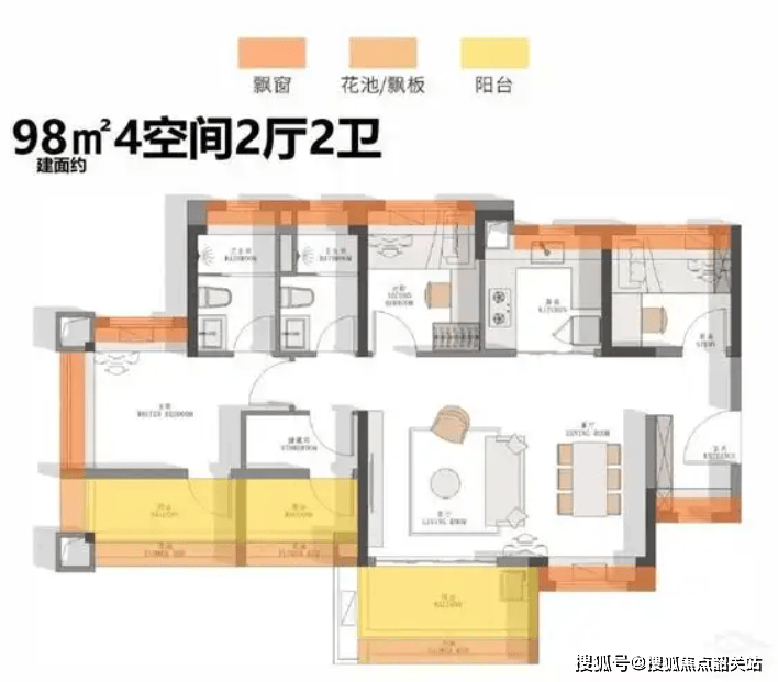 98㎡四房两厅两卫户型则是一个创新之作。它创造性地采用了LDKB(Living, Dining, Kitchen, Balcony)亲子一体化设计。在这个设计中,厨房不再是封闭的孤岛,而是与餐厅、客厅、阳台打通,形成了一个巨大的家庭核心区。家长在厨房忙碌做饭时,可以随时随地看到在客厅玩耍的孩子,实现了无障碍的亲子互动。四空间的灵活布局,既可以满足多孩家庭的居住需求,也可以根据家庭喜好改造成书房、影音室或储物间。总价可控的四房设计,让二胎家庭也能轻松实现改善梦想。