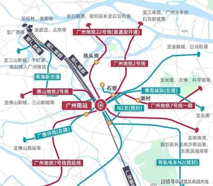项目位于广州南站核心商务区 是整个华南地区重要的高铁交通枢纽区 作为全国客流量最大的高铁站之一 广州南站年吞吐量突破三亿人次 项目附近汇聚多条城市轨道交通线路 包括地铁二号线 七号线 二十二号线和佛山地铁二号线 同时连接多条高铁干线 例如广深港线 武广线 南广线及贵广线 使得项目具备广域辐射能力 居民可实现四十八分钟直达香港九龙 此外 周边城际铁路及城市主干道交错分布 构建起立体多维的交通体系 对于上班族和高频出行者而言 居住于此意味着极大的时间效率提升