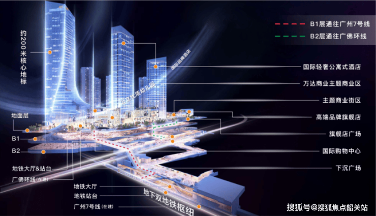 2. 四轨交汇,交通便捷通达:项目作为真TOD上盖,坐拥广佛环线、广州地铁7号线、佛山2号线及地铁11号线四轨交汇的优势,7号线已开通,步行200米可达地铁口,1站广州南,30分钟畅达广佛各大核心商圈;同时依托多维路网,驾车10分钟可达广州南站,40分钟直达珠江新城,彻底打破广佛通勤壁垒,实现“工作在广州,生活在佛山”的理想生活。