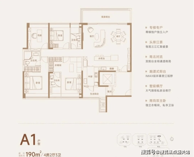 该项目提供多种户型选择,从103㎡到257㎡不等,涵盖三至四房单位。所有户型设计均考虑到采光、观景、通风等功能,尤其是超6米宽境阳台和生活阳台的设计,让住户能够充分享受江景资源。