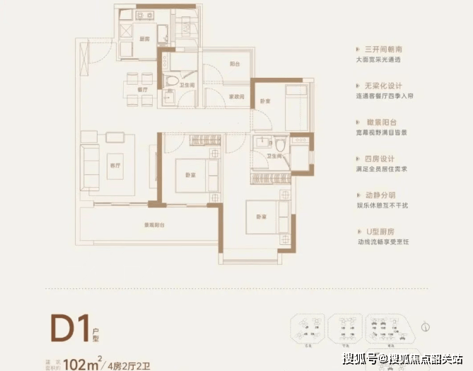 高小区品质:由深业置地开发,低容积率,半围合式设计,全南向纯四房户型,且绿化率达到35%,打造了多个主题乐园及首层架空层等休闲娱乐设施。