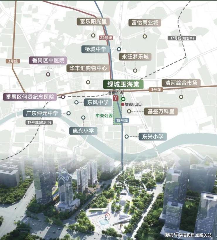 交通便利:临近地铁3号线、18号线及22号线,步行至番禺广场站E口仅需280米,未来规划中的17号线将进一步加密轨道交通网络。