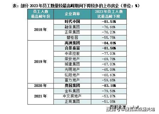 2020年开始减员并且降幅较大的房企有奥园集团;