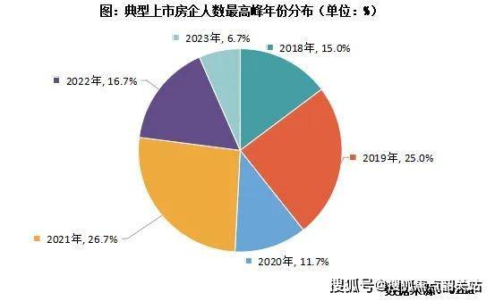 根据历年年报披露的员工人数,CRIC统计了典型上市房企2018年至今以来的“员工总量高峰”情况,人数最多的年份集中于2019年和2021年,占比分别为25%和26.7%。恒大、富力、中梁等房企人数最高峰都位于2019年,龙湖、金地、绿城、金茂等房企的人数最高峰出现在2021年,不同类型的房企人数开始走低的时间点有所不同,但从2021年以后,上市公司人数总量下降成为房企的主要趋势。