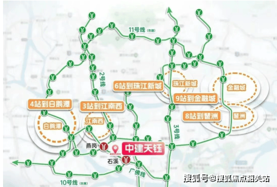 - 交通方面,中建天钰处于地铁广佛线燕岗站和石溪站中间。距离广佛线石溪站约800米,步行需12分钟左右;距10号线工业大道南地铁站约900米,步行14分钟左右;到广佛线和11号线交汇处的燕岗站也是900多米,步行14分钟。虽然周边有多条地铁线路,乘坐11号线外环去琶洲8个站,44分钟左右;坐广佛线转3号线去珠江新城6个站,35分钟左右,但步行到地铁口的距离和时间在夏季等特殊天气下,对居民出行会造成一定不便。自驾方面,虽处于两条主干道交汇处,出行看似方便,然而新滘西路和工业大道车流量极大,堵车频繁。且项目在丁字路口抬高坡边上的辅路,道路设计复杂,掉头困难,一旦走错,需多花费10多分钟重新返回,给自驾出行带来诸多麻烦。售楼处电话:400 - 622 - 0051。