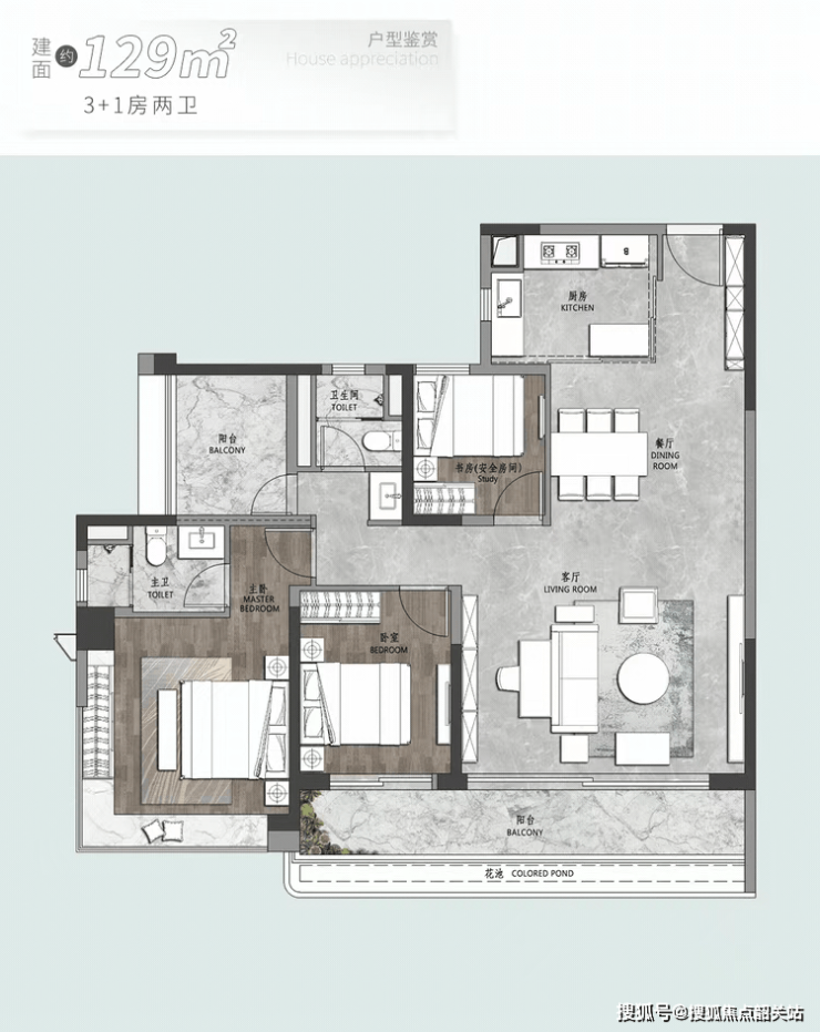 177㎡四房:独梯独户,8.9米IMAX观景阳台,双主卧套房,30㎡主卧配L型飘窗;