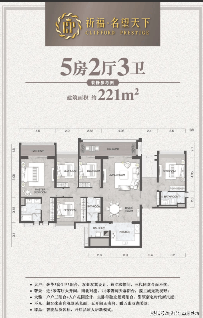 祈福名望天下:包含78㎡(2房)、105㎡、120㎡、126㎡(3房)、175㎡(4房)、221㎡(5房)等多种户型选择,价格区间为4.6-4.9万元/㎡。