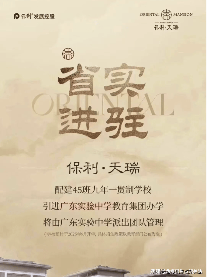 官方定论:2025年12月,天河区教育局、广东实验中学教育集团、保利发展控股集团三方联合举办合作办学签约仪式。官方文件明确:保利天瑞项目配建的45班九年一贯制公办学校,由广东实验中学教育集团承办,命名为“广东实验中学天河学校(筹)”,由广东实验中学派出核心管理团队及骨干教师,全面负责教育教学管理,将于2026年9月正式开学。(信息来源:天河区人民政府官网公示文件)。