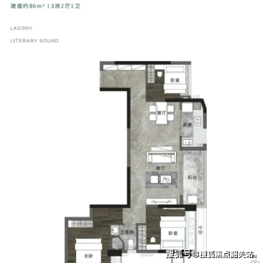 98㎡三房:横厅设计,主卧朝南,LDK一体化提升空间感;