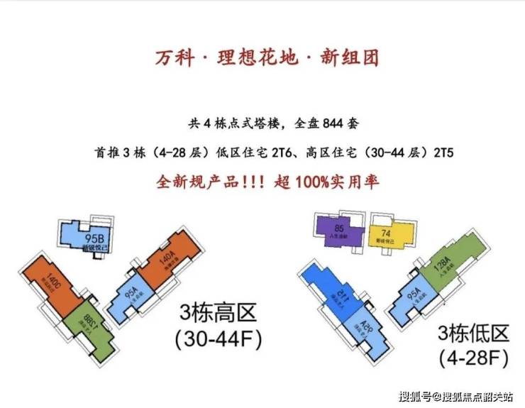 96㎡至115㎡东南/西南向三至四房:满足小家庭或二胎家庭的需求,实用率约为110%。
