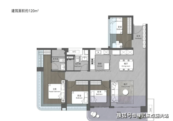 115-123㎡四房:配备入户花园、超大采光面,南北通透,兼顾实用与舒适;