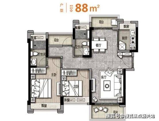 户型亮点:得房率最高达90%,如88方带装大三房南北双阳台,居住舒适度极高。
