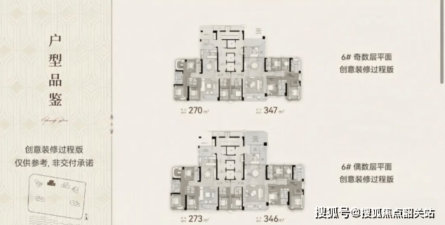 项目共有6栋住宅楼,前低后高,呈半月型布局。具体楼层高度及户型分布如下: