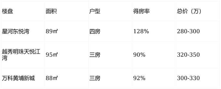 和竞品怎么选?若注重学区+商业+得房率,选星河东悦湾;若注重江景资源,可选越秀明珠天悦江湾;若预算有限,可考虑万科黄埔新城(但通勤时间多20分钟)。