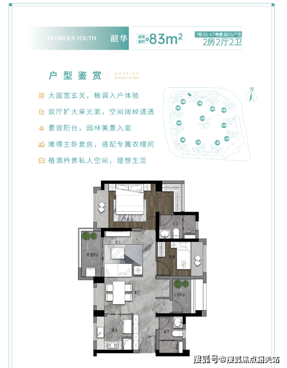 项目位于增城区科教城板块凤岗地铁站旁,是广州“东进”战略的重要承载区。片区规划总面积达30平方公里,总投资1800亿元,体量为大学城的6倍,已落地12所高职院校,未来将容纳超30万师生,形成“产、学、研、居”一体化生态。社区共12栋住宅,当前主推1、2、3栋,层高32至49层,采用2梯6户设计,在保障通行效率的同时控制公摊。整体容积率为3.13,配合30%绿化率与合理的楼间距,兼顾居住密度与舒适度,是典型的大规模刚需友好型社区。