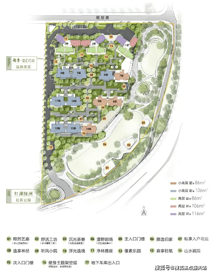 八大景观节点:包括镜面水景、星空剧场、宠物乐园等。