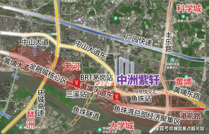 老黄埔的购房者,70%是天河、黄埔的上班族,他们对通勤时间极度敏感。中洲紫轩的区位优势,用三个关键词概括:“地铁上盖”“自驾便捷”“规划兑现快”。