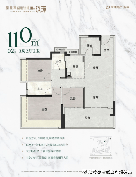 110平方米户型:奢阔格局,主朝向西南,带来宽敞明亮的居住体验。