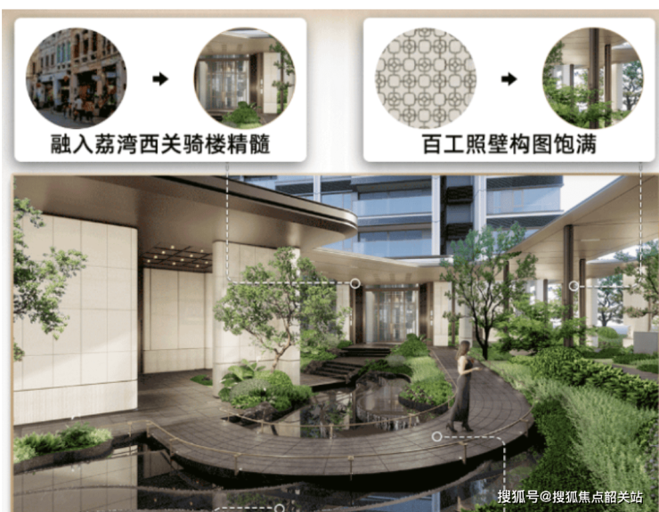 园林景观设计精致,岭南名园风格与现代生活体验融合;