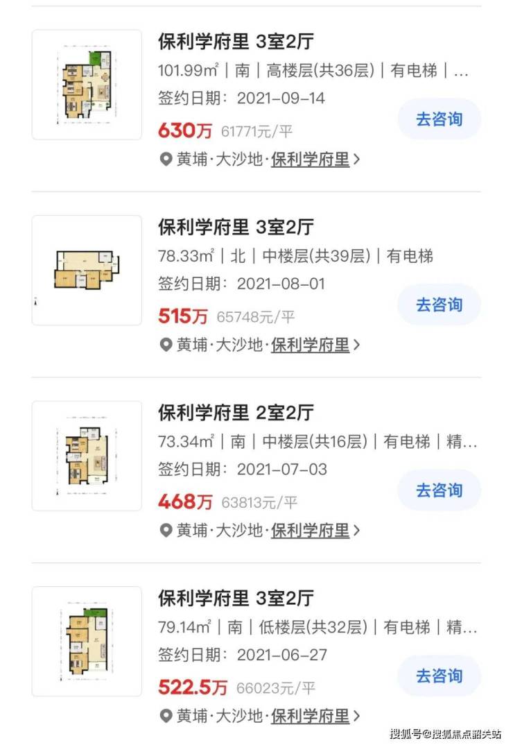 保利学府里能成为老黄埔的网红次新小区,绝非偶然。论地段,它紧邻鱼珠 CBD,享受广州东进战略的红利辐射;论交通,步行可达 5 号线大沙地站,地铁串联起珠江新城、金融城等核心商圈,通勤族通勤出行效率拉满;论配套,大沙地商圈成熟度肉眼可见,日常购物、餐饮娱乐下楼即享;论房龄,7-11 年的楼龄在二手房里堪称 “黄金年龄”,既避开了老破小的陈旧短板,又没有新盘的漫长等待期。也正因如此,2021 年楼市火热时,这里的房价一度冲上 6 万 +/㎡,就连 78㎡的北向三房,都能卖到 6.5 万 /㎡的高价,是当时老黄埔成交 6 万 + 房源最多的小区,风头无两。