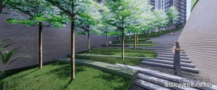 项目依托原生山体台地高差,打造立体自然峡谷式园林景观,以 Y 轴中庭中轴为核心,串联起多元景观节点与功能空间,实现藏山入园、前后双山盛景的景观效果。社区园林以山居美学为核心设计理念,打造约 10000 平方米沉浸式景观空间,规划水系景观带、全龄活动区、休闲步道、观景平台等多元景观节点,将自然山景与社区景观深度融合。社区园林同时兼顾功能性与观赏性,根据不同年龄段业主的需求,规划分龄活动空间,包含儿童游乐区、青年运动区、老年康养区,同时打造环形健身步道,串联各个景观节点与功能空间,让业主在自然景观中实现休闲运动与日常社交,打造出一步一景、步移景异的沉浸式园林体验。