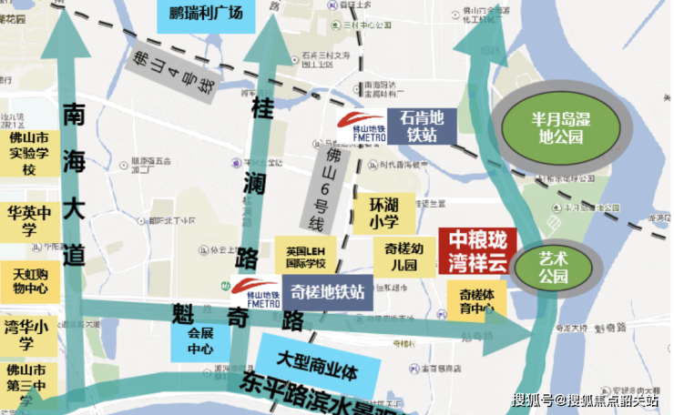 项目位于三龙湾核心区,是佛山市政府战略规划重点区域,区位优势明显,交通便捷。项目邻近广佛一环高速、广明高速及南海大道、季华路等城市主干道,实现快速通达佛山各城区及广州南站。轨道交通方面,佛山地铁2号线预计通车后可实现六站直达广州南站,无缝接驳广州地铁线路,地铁6号线奇槎站紧邻社区门口,形成双地铁交汇点,出行选择多样化,生活与通勤兼顾,未来广佛一体化发展将进一步提升区域居住价值。