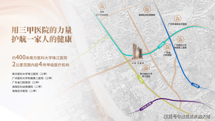 项目周围医疗资源丰富,步行500米即可到达南方医科大学珠江医院,另有广州医科大学附属第二医院、广州市红十字会医院等多家三甲医院保驾护航,为居民健康提供全方位保障。